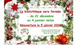 FERMETURE BIBLIOTHÈQUE DU 21 DÉCEMBRE AU 04 JANVIER 2026 22 décembre 2025 22 décembre 2025 Lire la suite